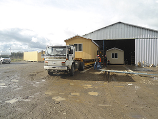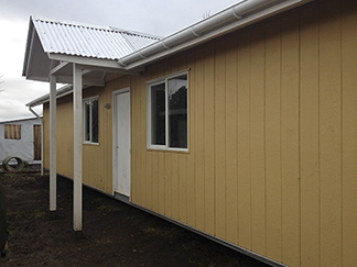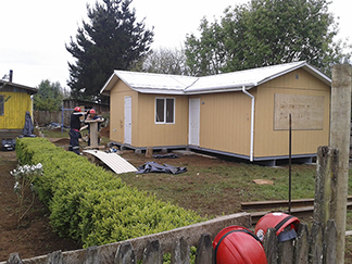 Programa de reconstrucción en sitio propio por los damnificados del terremoto del 27 F de 2010, dando solución a 63 familias vulnerables de la Región del Biobío, Solución Modular por vivienda construida en Planta de fabricación ubicada en la ciudad de La Unión. |