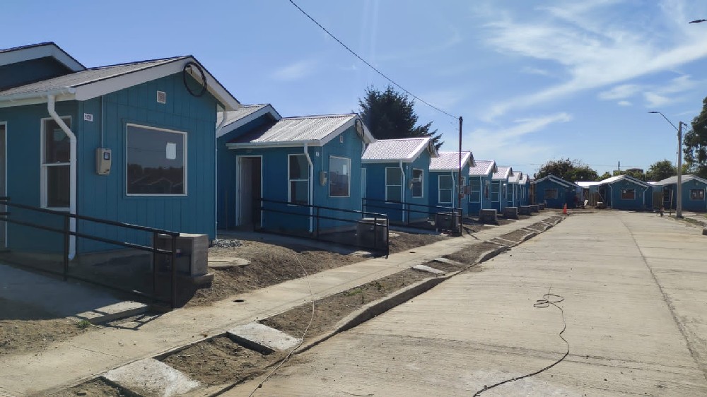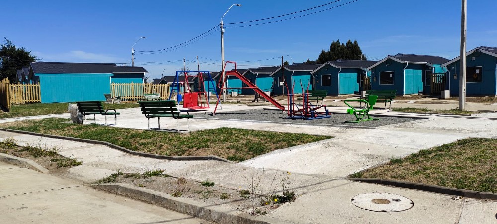 Corresponde a la construcción de 41 casas de 46 m2 c/u, más zonas de equipamiento y áreas verdes, comuna de Paillaco, 100% terminada y entregada. |
