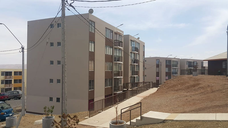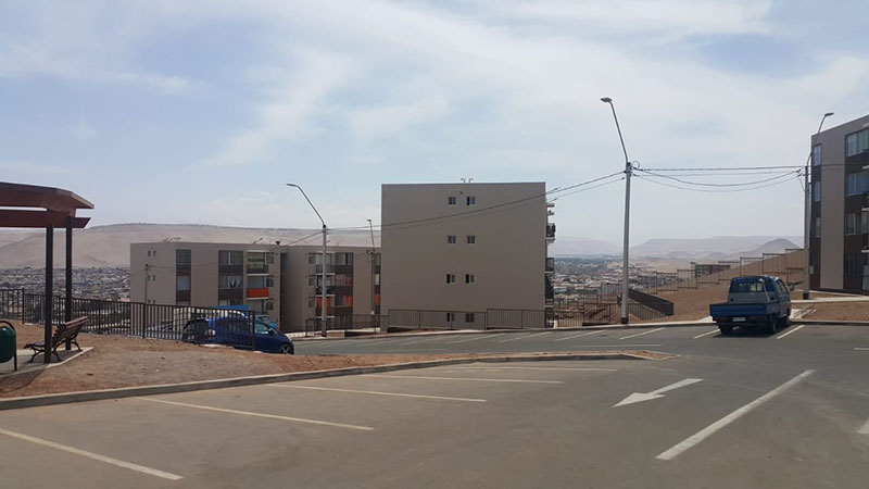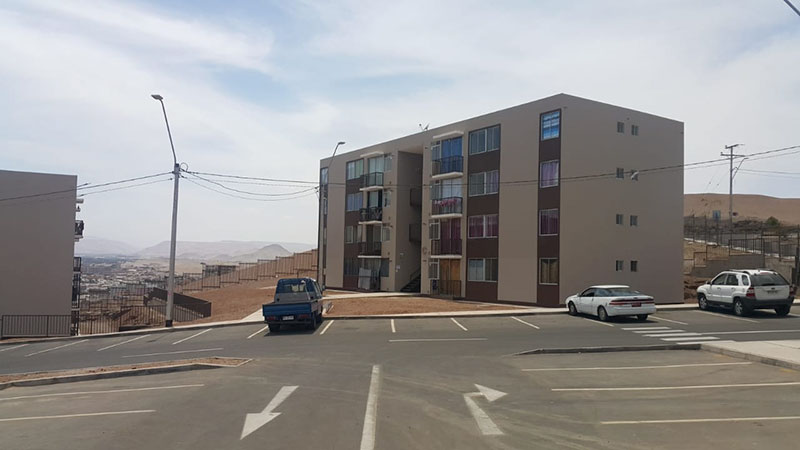 Correspondiente a Conjunto Habitacional Vista Mar y Vista Hermosa, correspondiente a 140 y 224 deptos., de 61 m2 c/u, sector Cerro la Cruz, comuna de Arica, Región de Arica y Parinacota, ambas obras con un 100% terminadas. |